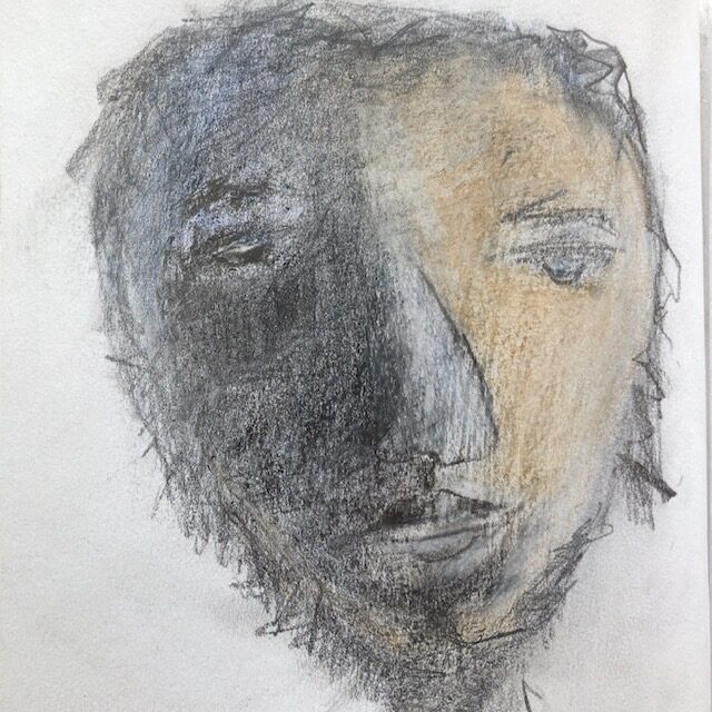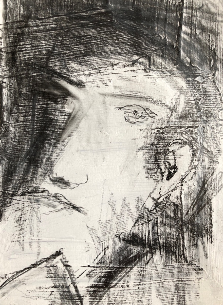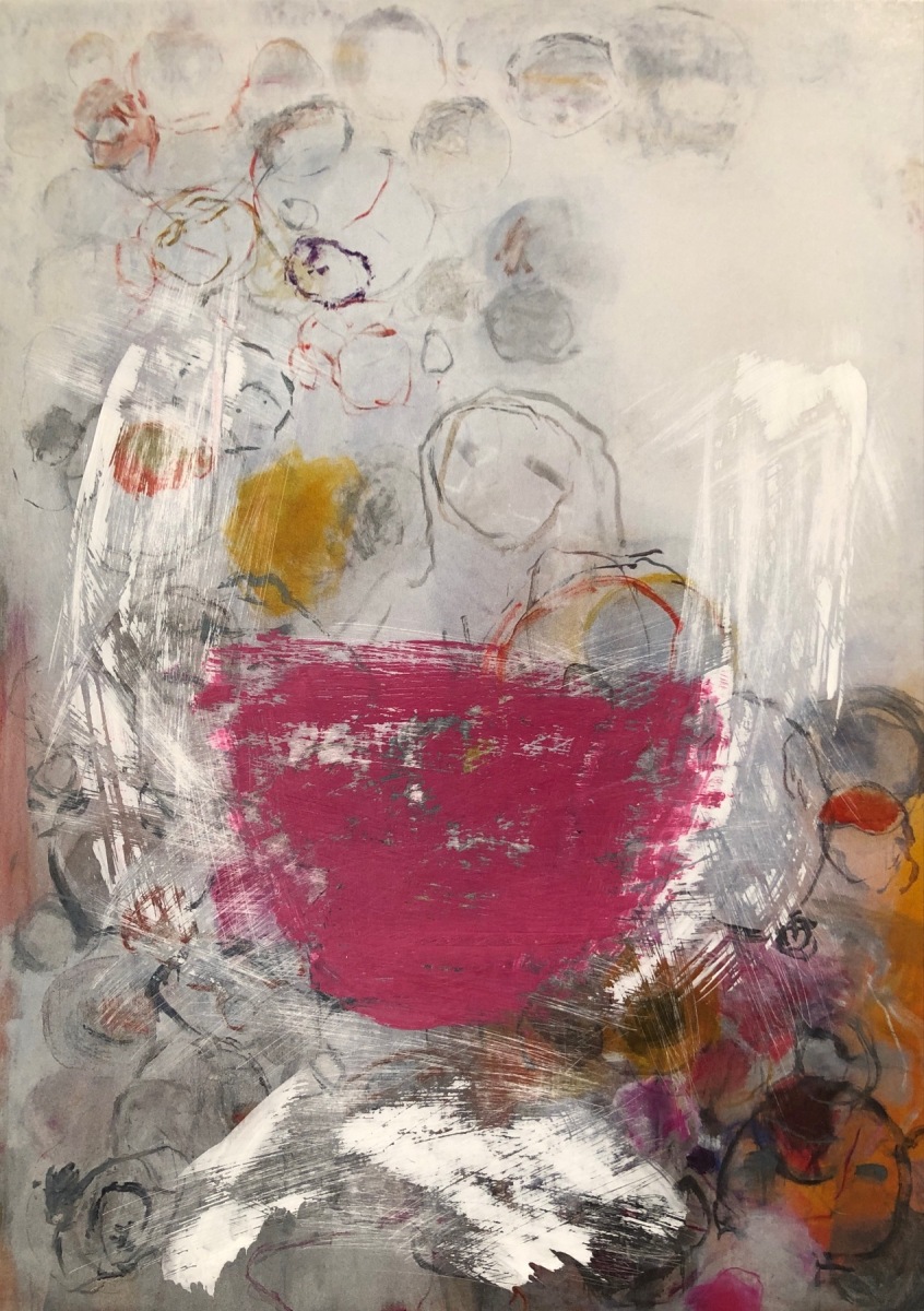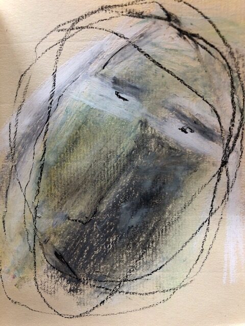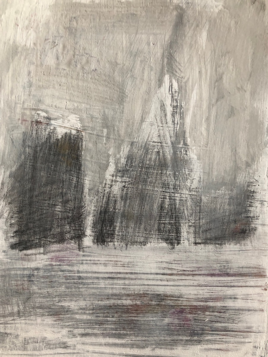 Trautes Heim…, 2025; 15,5×20 Dispersion/Pastell/Kohle