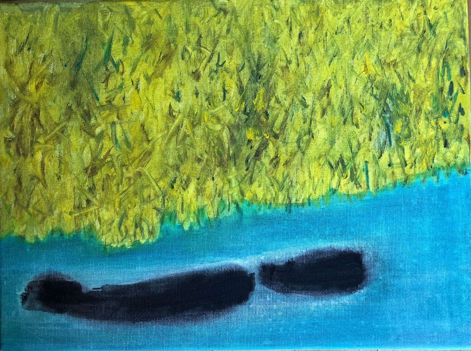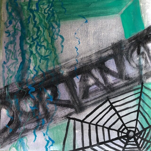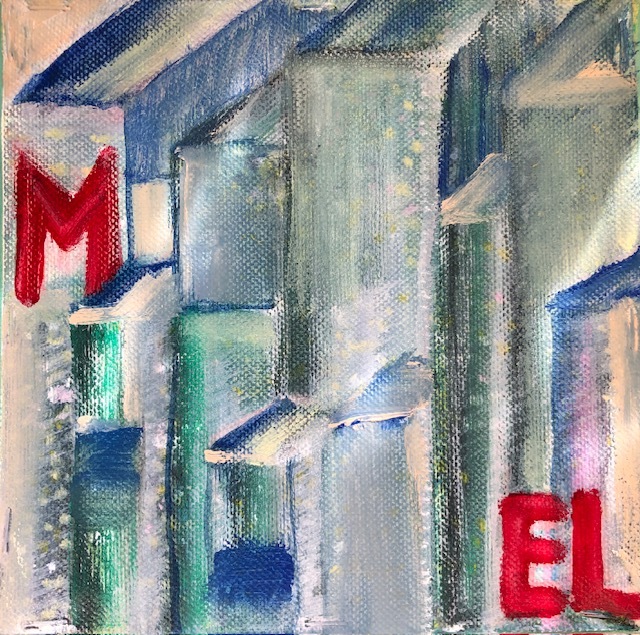Regents Canal, 2020; (Galerie 4, 6 Bilder, zweiseitig,beweglich) 20×20 Öl auf LW (mehr) (Galerien)