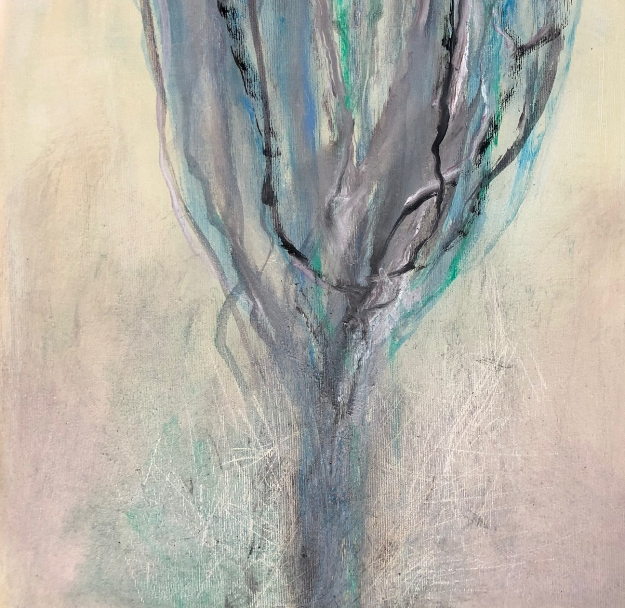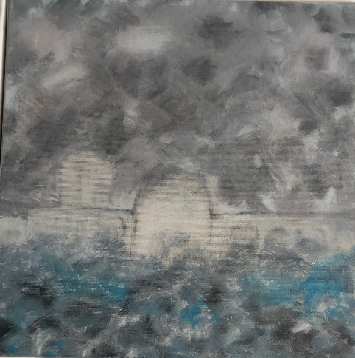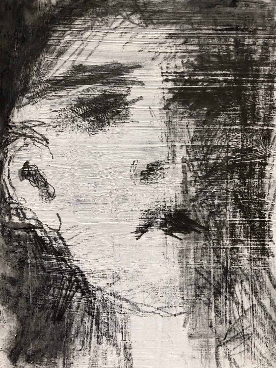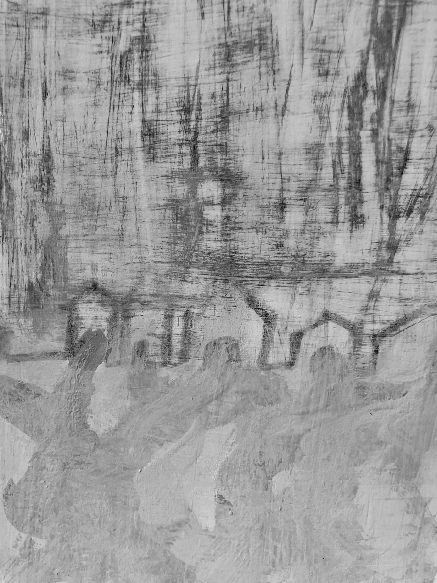 Schlechte Sicht, 2019; 80×100 Öl auf LW (Palimpsest)