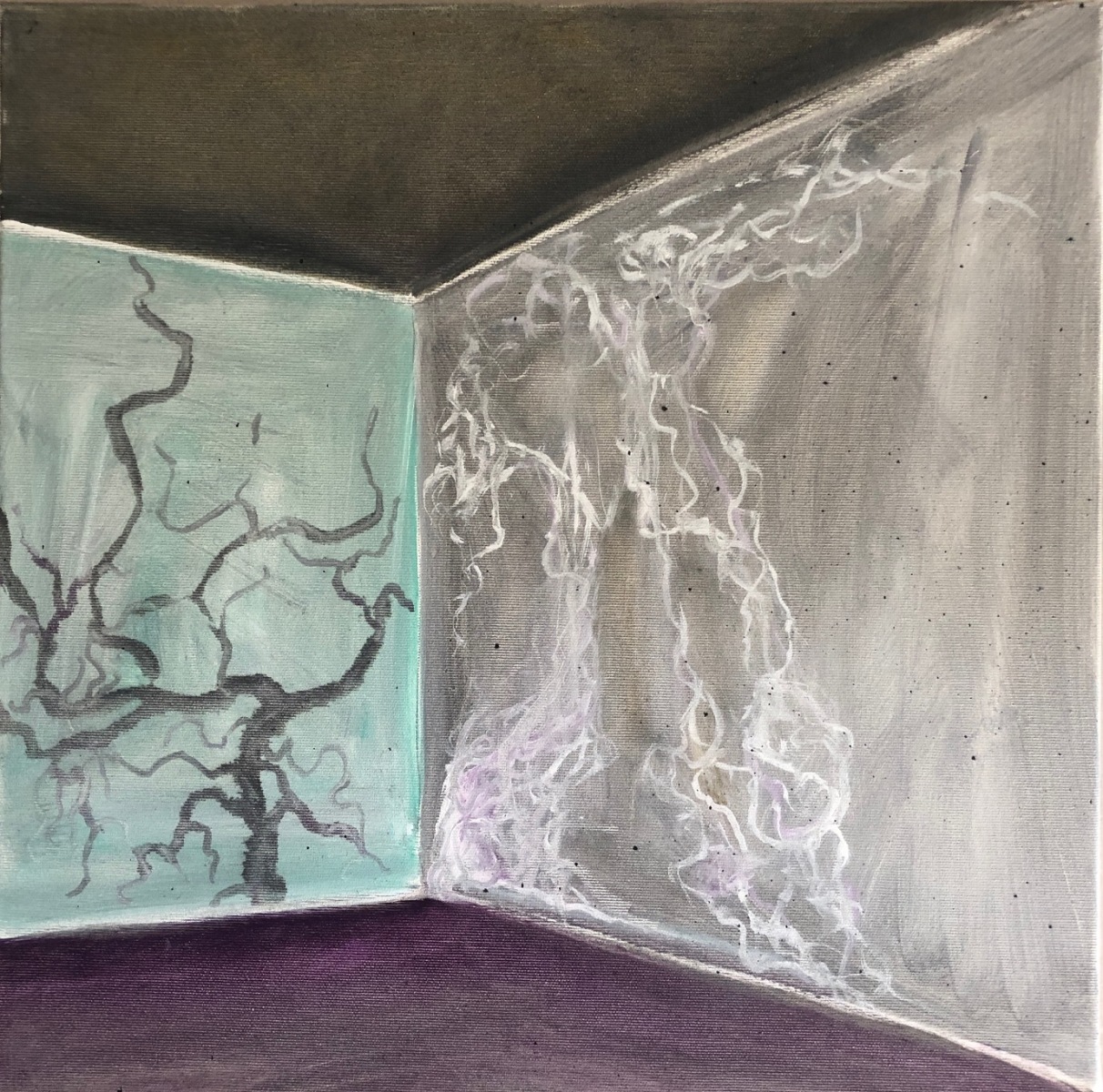 Materialsuche 1/2, 2019; 30×30 Öl auf LW