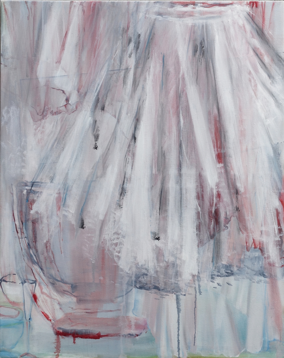 Zur Anprobe, 2019; 52×87 Öl auf LW