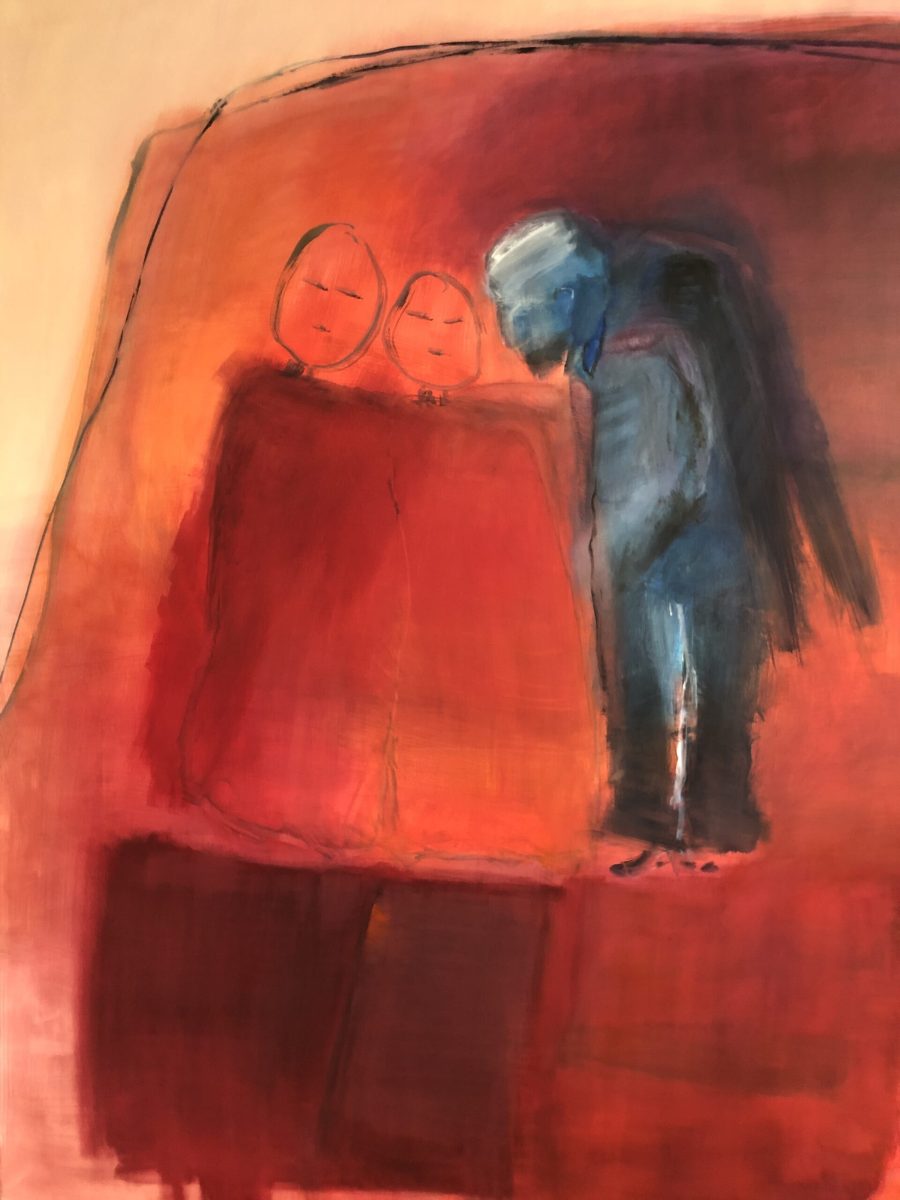Nächtlicher Besuch, 2024; 120×160 Öl auf LW