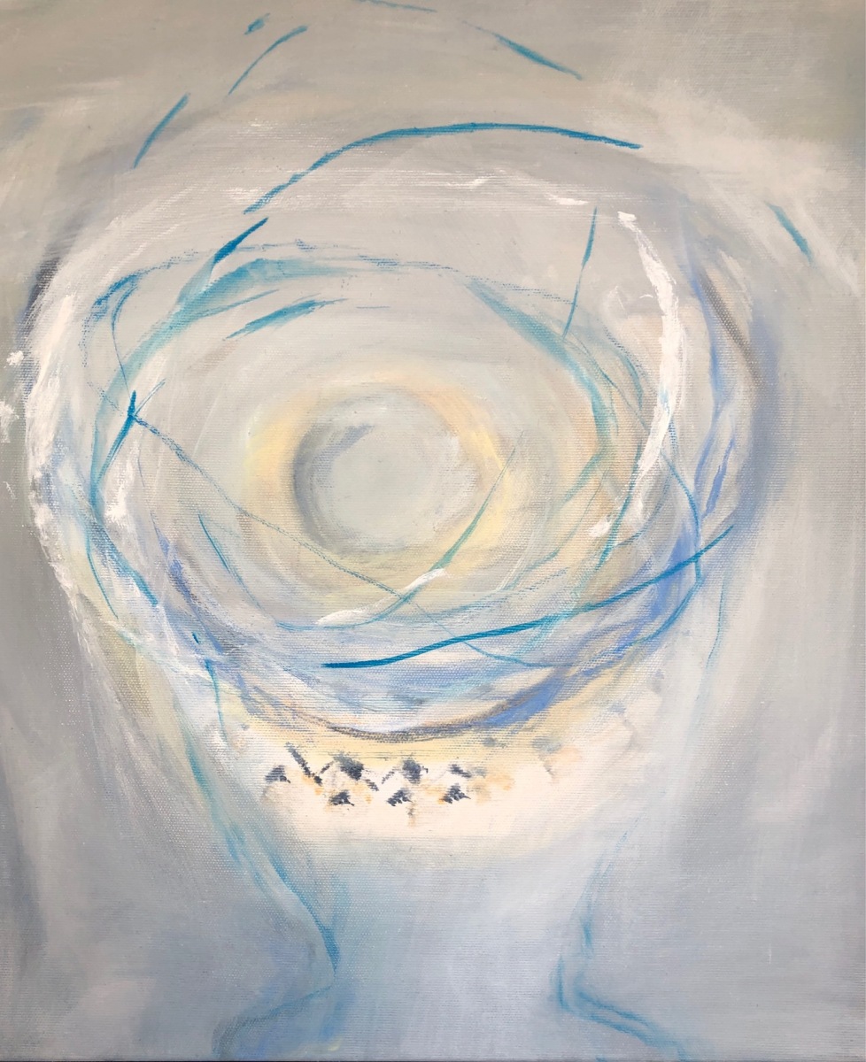 (vergl. „Aus Wasser geboren, 2023; 85×124 Öl auf LW)