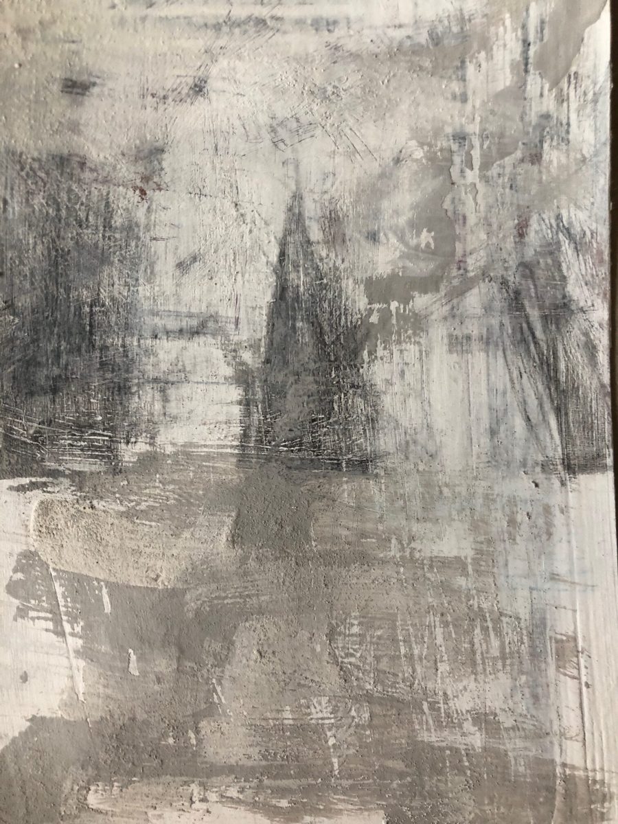 Sturmtief über Maloja, 2025; 15,5×20 Bleistift/Dispersion