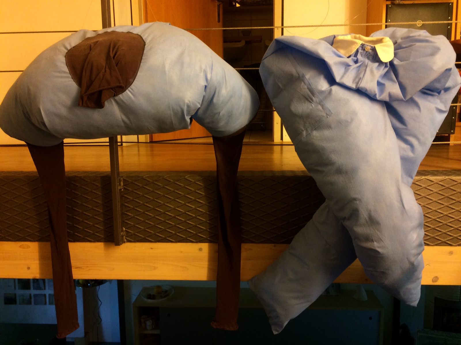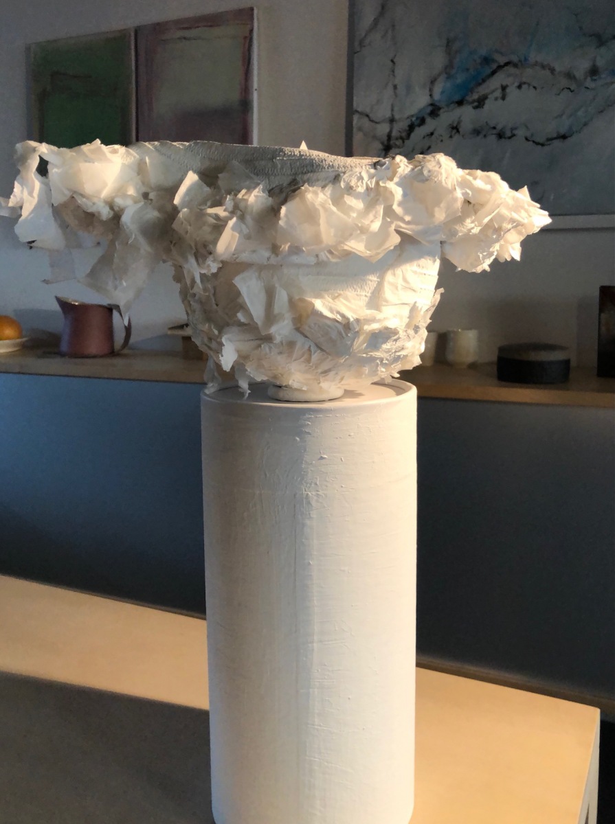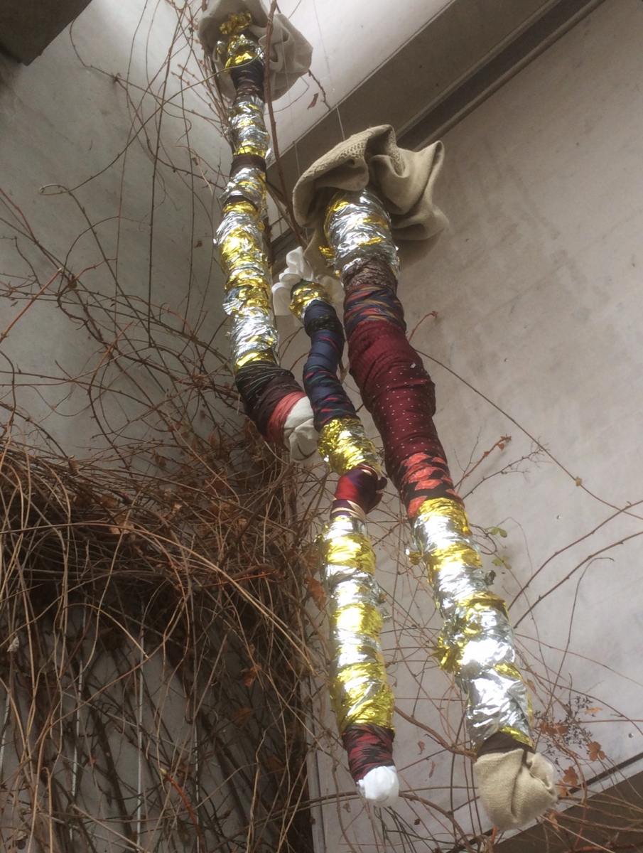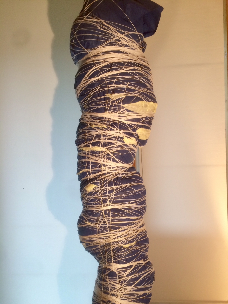 Vorform, 2019; 145×35 Synthetikvlies/Baumwollgarn, Luftpolsterfolie (mehr)