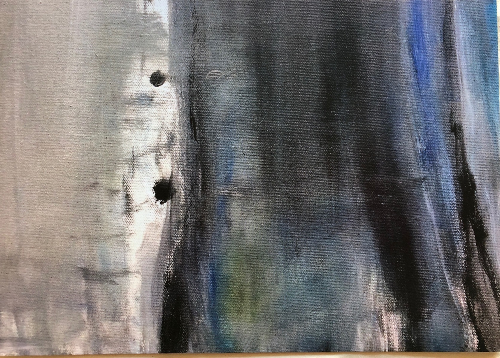 Stille Wasser, 2021; 18×26 Papiergeflecht, Kleenex, Satin/Nähfaden, Schreibpapier